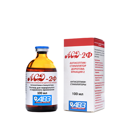 Для лечения инфицированных вялозаживающих ран и свищей пораженный участок промывают 15-20% раствором другого препарата АСД–2 до прекращения гнойных выделений, а после этого накладывают марлевую салфетку с 20% масляным раствором препарата АСД–З, которую фиксируют бинтом. Лечение проводят до выздоровления, ежедневно заменяя салфетки с препаратом.