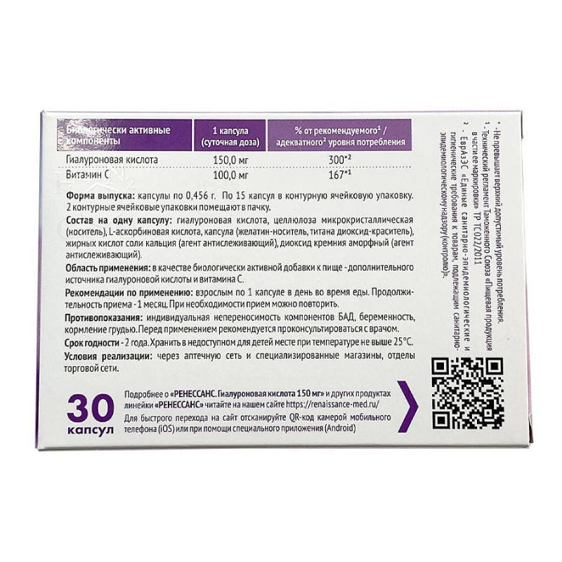 Каждая капсула содержит гиалуроновую кислоту (300 мг).