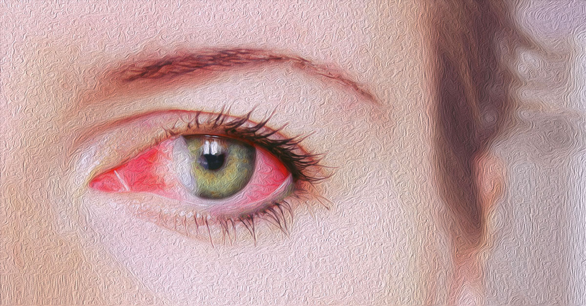 Воспаление слизистой оболочки глаза (конъюнктивы), вызванное аллергической реакцией или инфекцией (бактериальной или вирусной). Вызывает отёк век, гиперемию конъюнктивы, слезотечение и покраснение белка глаз.