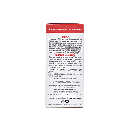 Армавирская биофабрика производит состав в стеклянных затемненных флаконах, емкостью 10, 20, 50, 100, 200 мл. Храниться средство должно в плотно закрытой таре, в сухом, затемненном месте, отдельно от медикаментов, кормов, а также продуктов питания, при температурном режиме 10-30 градусов. Состав должен находиться в месте, недоступном для детей. После вскрытия флакона, срок хранения сокращается до двух недель, так указано в инструкции.